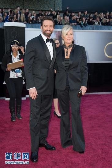 2月24日,在美國好萊塢舉行的第85屆奧斯卡獎頒獎典禮開始前, 澳大利亞演員休·杰克曼(左)與妻子德博拉·李·弗內(nèi)斯亮相紅地毯。當天,第85屆在好萊塢舉行。