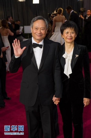 2月24日,在美國好萊塢舉行的第85屆奧斯卡獎頒獎典禮開始前, 導演李安(左)與妻子林惠嘉亮相紅地毯。當天,第85屆在好萊塢舉行。