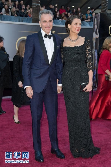 2月24日,在美國好萊塢舉行的第85屆奧斯卡獎頒獎典禮開始前, 影星丹尼爾·戴-劉易斯(左)與妻子瑞貝卡·米勒亮相紅地毯。當天,第85屆在好萊塢舉行。