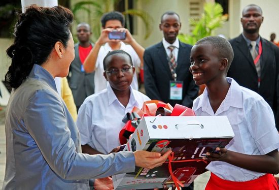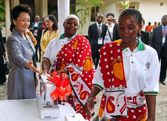 彭麗媛向坦桑尼亞基金會(huì)贈(zèng)送縫紉機(jī)和書(shū)包[組圖]