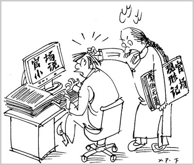 “總是有一個(gè)貪官,這個(gè)貪官有一個(gè)貪得無(wú)厭的老婆,少不了還要有一個(gè)情婦,最后事情就是由這個(gè)情婦敗露,此外必然有一個(gè)見(jiàn)義勇為的記者,甚至是美女記者介入……”事實(shí)上,“官場(chǎng)小說(shuō)”對(duì)相互傾軋的權(quán)力斗爭(zhēng)給予濃墨重彩的“仿真”描寫(xiě),以滿足或迎合一些讀者的獵奇心理,自覺(jué)不自覺(jué)地導(dǎo)致了題材和寫(xiě)作手法的同質(zhì)化。官場(chǎng)小說(shuō)的程式化、類型化因作者思維狹窄和僵滯日見(jiàn)彰顯。人們對(duì)此類小說(shuō)套路的純熟,本身就說(shuō)明了問(wèn)題。