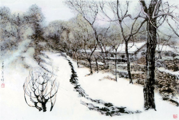 王琦素以版畫(huà)創(chuàng)作著稱畫(huà)壇,晚年亦在中國(guó)畫(huà)創(chuàng)作上著力良多,圖為近作:銀色世界系列之二