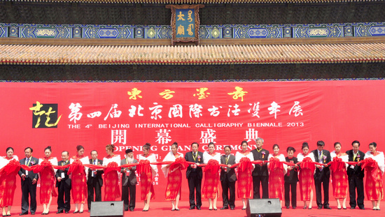 中外嘉賓為第四屆北京國(guó)際書法雙年展開幕剪彩