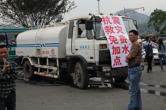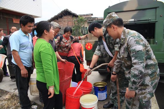 救援部隊為受災群眾分水 雅安攝協劉南康攝