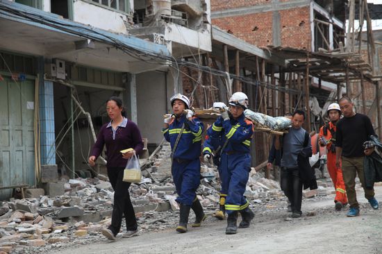 太平鄉向外運送傷員 雅安攝協劉南康攝