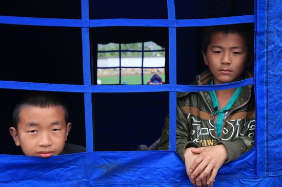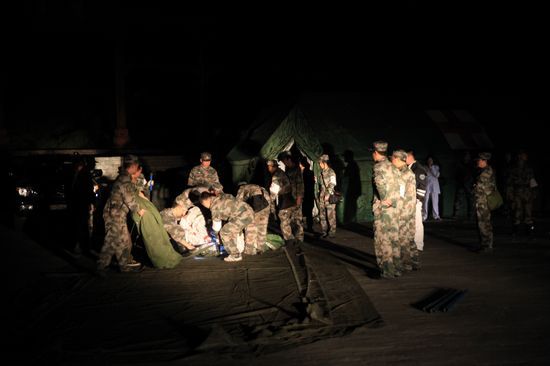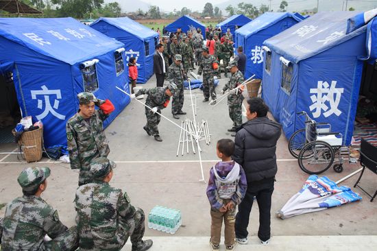 救援部隊在搭建帳房 雅安攝協劉南康攝