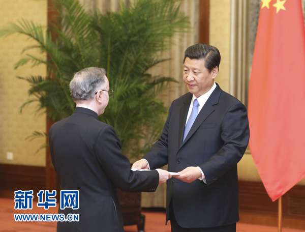 習近平對外國使節們來華履新表示歡迎,請他們轉達對各自國家領導人和人民的問候,希望他們為促進中國同有關國家雙邊關系發展作出貢獻。