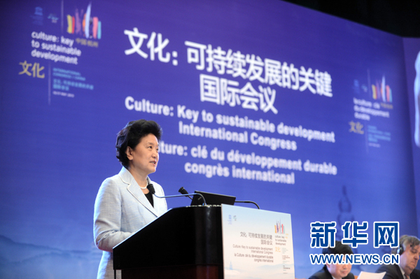 劉延東在致辭中指出,當今世界正處在大發展大變革大調整時期,文化在國家發展和人類進步中的作用日益凸顯,迫切需要從文化的高度審視傳統發展理論和發展道路;文化與經濟、政治、社會關系更加緊密,迫切需要文化成為經濟社會發展和人的全面發展的支撐力量;國與國之間相互依存不斷加深,人文交流日趨深入,迫切需要文化發揮增信釋疑、溝通心靈、深化友誼的獨特優勢。當前,走可持續發展道路已成為各國的共同選擇,只有把可持續發展的理念凝聚成文化的共識,轉化為人們的自覺行動,世界才能擁有更加美好的未來。她倡議,要尊重文化多樣性和各國自主選擇發展道路的權利,在包容中求共識、在差異中促和諧、在合作中共發展。要推動文化傳承創新,以文化之力塑造人與人、人與社會、人與自然的和諧關系,為可持續發展提供強勁動力。要堅持文化創造源自人民、文化價值在于惠民的理念,優化文化發展環境,激發推動文化繁榮的生機與活力,不斷滿足人們精神文化需求。要深化跨文化交流,發揮文化影響力,共同推動和諧世界建設。中國政府將繼續把可持續發展作為國家的基本戰略之一,堅持以人為本、科學發展,在努力建設美麗中國、實現“中國夢”的同時,為人類繁榮進步作出應有貢獻。