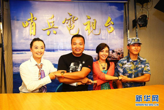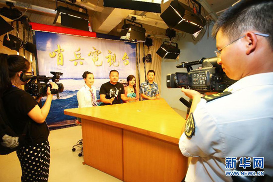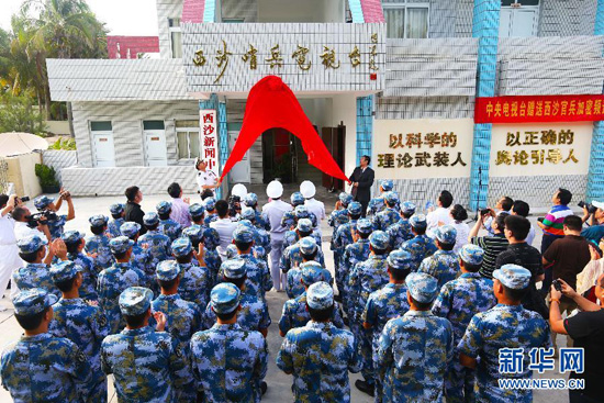 “西沙哨兵電視臺(tái)”在西沙群島永興島海軍某水警區(qū)揭幕掛牌(5月23日攝)。 5月23日,“西沙哨兵電視臺(tái)”在西沙群島永興島正式掛牌開播。海軍駐西沙部隊(duì)官兵將會(huì)看到由自己的電視臺(tái)拍攝制作的、反映守島官兵生活的電視節(jié)目。新華社記者 查春明 攝