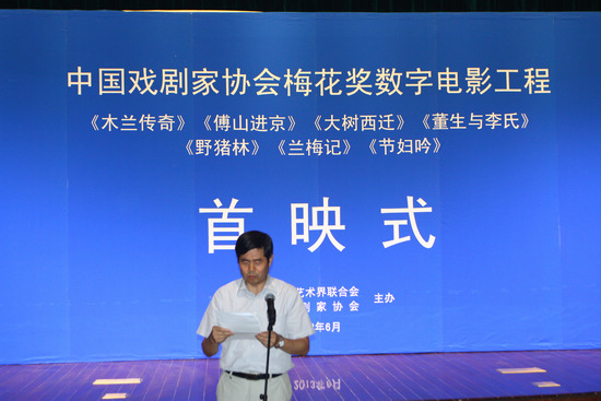 首映式上,中國劇協(xié)分黨組書記、駐會副主席季國平向大家介紹了首批梅花獎數(shù)字電影工程的具體拍攝情況,白淑賢、馮小寧和國家新聞出版廣電總局電影管理局局長張宏森分別代表參加拍攝的演員、電影界人士和電影局先后致辭。