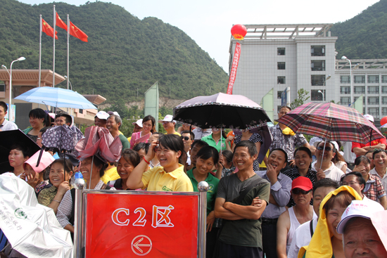 演出當天,天氣異常炎熱,但人們熱情更高。“在聽相聲呢”,小伙子電話“匯報”著演出情況;老大爺帶著望遠鏡,早早和老伴兒趕來占了個好位置。港安水泥公司的何陳與百余位工友看得合不攏嘴,忙著拍照,“現場看到這么多知名藝術家,我們老百姓高興!”穿著少數民族盛裝的關嶺民族高級中學高一學生馬鳳蘭是個漂亮的布依族女孩,她看到了她的老鄉、著名歌手阿幼朵,激動極了。回到家鄉的阿幼朵一曲高歌,在開場演出中把氣氛調動得異常火熱,她自己也很興奮:“感謝中國文聯關心我的家鄉,惦記著我的兄弟姐妹。”