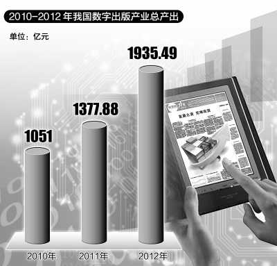 國家新聞出版廣電總局副局長孫壽山說,在“十一五”結束時的2010年我國數字出版總產出突破了千億元大關,達到1051億元,而進入“十二五”以來,數字出版年產出發展到2012年的接近2000億元,兩年間實現了從千億元向兩千億元的邁進。