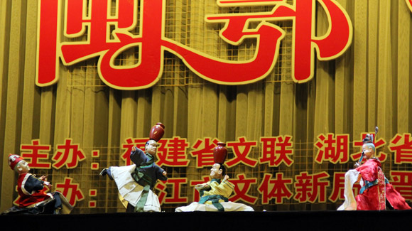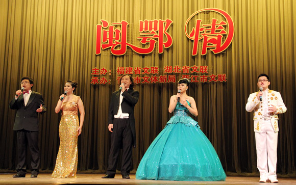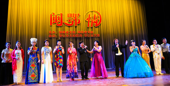 演出中,鄂閩兩地藝術(shù)家同臺(tái)高歌。傅正明/攝