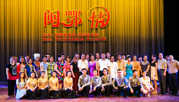演出結(jié)束后,參演的鄂閩兩地藝術(shù)家及采風(fēng)團(tuán)成員合影留念。傅正明/攝