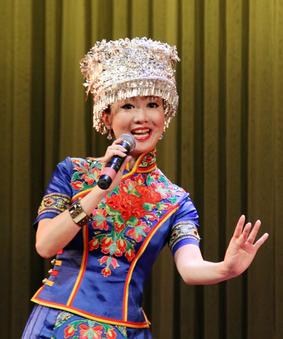 國(guó)家一級(jí)演員郭曉蕾女聲獨(dú)唱《我的江漢大平原》《蘆花》。中國(guó)藝術(shù)報(bào) 喬燕冰/攝