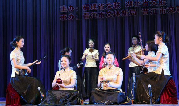 晉江市音樂(lè)舞蹈協(xié)會(huì)江良洪等表演歌曲聯(lián)唱。中國(guó)藝術(shù)報(bào) 喬燕冰/攝