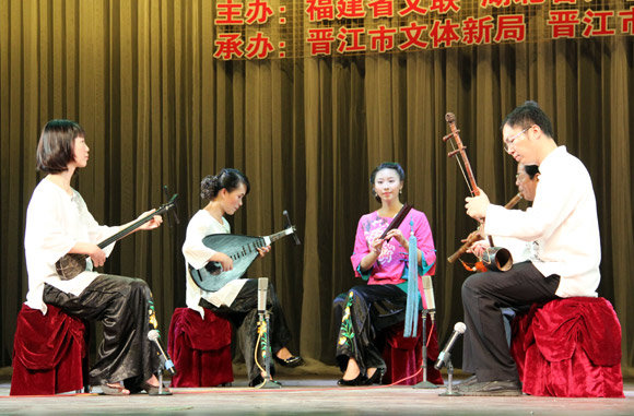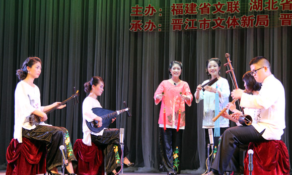 盛夏的福建無(wú)處不是熱浪翻涌,而晉江市戲劇中心內(nèi)卻雅韻撲面,清音沁人。7月6日在此舉行的“閩鄂文藝情,攜手走基層”惠民文藝演出中,由晉江市南音協(xié)會(huì)陳小紅、丁美姍等表演的南音對(duì)唱《春光明媚》,讓人非屏息而聞不能感受其妙味。