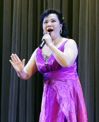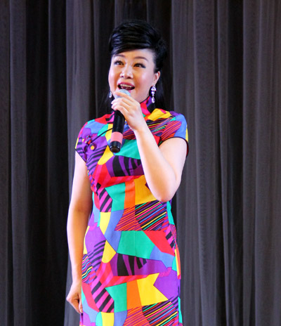 國(guó)家一級(jí)演員、文華獎(jiǎng)得主李祝華獨(dú)唱《紅梅贊》《我和我的祖國(guó)》。中國(guó)藝術(shù)報(bào) 喬燕冰/攝