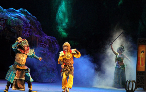 開幕式結(jié)束后,與會(huì)領(lǐng)導(dǎo)、嘉賓與劇場的小觀眾們一起共同觀看了大型神話舞臺(tái)連續(xù)劇《西游記》(第三部)。中國藝術(shù)報(bào) 喬燕冰 攝