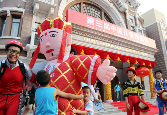 7月12日,由中國兒童藝術(shù)劇院主辦的第三屆中國兒童戲劇節(jié)在京開幕。開幕式上,西游記卡通人物形象與滿載小朋友的花車同游王府井,小丑、雜技、魔術(shù)齊聚戲劇嘉年華,主辦方還邀請了黑龍江依蘭縣郊村遠(yuǎn)方小學(xué)的孩子們第一次走出大山,與首都小朋友分享歡樂時(shí)光。從7月12日到8月28日,戲劇節(jié)歷時(shí)48天,涵蓋7個(gè)國家和地區(qū)的46部國內(nèi)外優(yōu)秀劇目,演出216場,預(yù)計(jì)將有16萬大小觀眾走進(jìn)劇場。