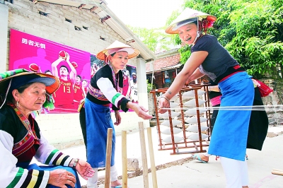 玉溪市新平縣的花腰傣族婦女演示傳統紡織技藝。本報記者 趙洪波攝