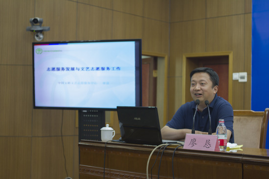 中國文聯文藝志愿服務中心副主任廖懇作了題為《志愿服務發展與文藝志愿服務工作》的報告