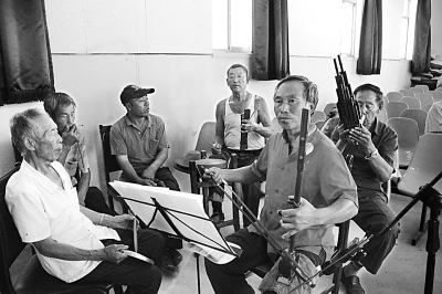周四溝村鄉村劇團成員在演奏。(資料圖片)