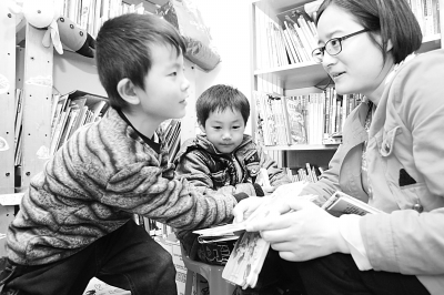 7年前,為了追逐自己的藝術夢想,大學畢業的毛菊,放棄了家里安排的工作,從武漢來到了北京798藝術區。兩年前,她在北京市朝陽區草場地村租了一間不足7平方米的房子,為村里的流動兒童辦起了免費圖書室。圖為毛菊在圖書室里為流動兒童讀書,與他們交流。 本報記者 高騰攝