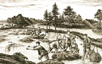把青春獻(xiàn)給農(nóng)莊 1957年 53×82.5cm 油印黑白木刻 中國美術(shù)館藏