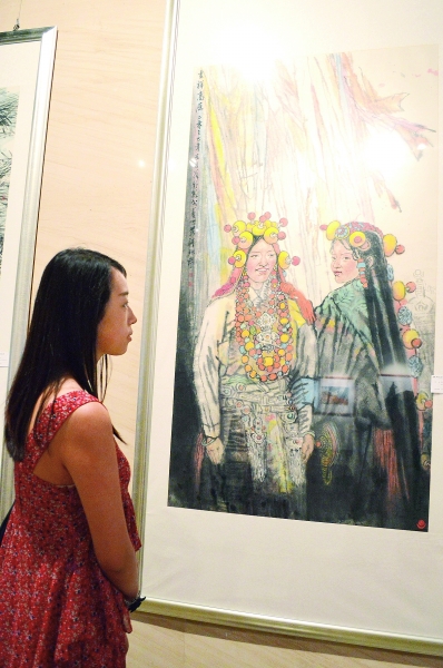 本次展覽共展出由蘭州藝術家們創作的116件藝術作品,具有鮮明的時代特色和濃郁的中國西部藝術風格。據蘭州市文聯主席汪小平介紹,蘭州文化藝術界鼓勵并組織藝術家深入基層,到工廠車間和田間地頭汲取創作營養,把手中的筆和鏡頭同基層緊緊融匯在一起,形成了一股強烈的藝術“西北風”。展出現場,國畫作品《吉祥高原》吸引了許多觀眾駐足欣賞。這幅作品由西北師范大學李葆竹教授在蘭州黃河北岸寫生創作完成,畫面中兩位藏族少女神態靈動傳神,色彩調配飽和明麗,虛實主次處理精妙,獨具濃厚的地方特色和鄉土風情。