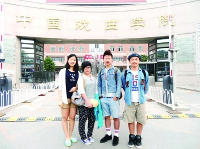9月3日是中國戲曲學院2013級本科新生開學報到的日子,來自臺灣的廖佳妮、李慶虹、徐挺芳、楊瑞宇四位京劇表演專業(yè)的學生興高采烈地踏進校園,并在大門口合影留念,慶賀他們終圓國戲夢。這是中國戲曲學院首次高招錄取臺灣學生。