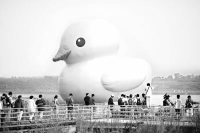 “鴨未到,聲先到。”此前,北京好幾個地方都爭相請“大黃鴨”駐足,最終選定了園博湖和頤和園。“大黃鴨”一來,吸引了不少“眼球”,相關報道也屢見報端,一會兒說它北京首秀“沒精打采”,一會兒又鬧出拼接錯誤的笑話,“鴨嘴”變成了“雞嘴”。