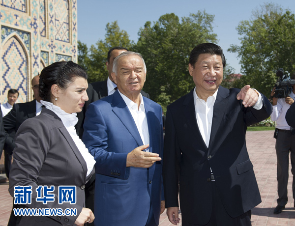 新華網烏茲別克斯坦撒馬爾罕9月10日電(記者李斌 陳贄)正在烏茲別克斯坦進行國事訪問的國家主席習近平在卡里莫夫總統陪同下,在首都塔什干和第二大城市撒馬爾罕參觀了烏茲別克斯坦歷史文化古跡,探尋古絲綢之路上各民族文化交流的歷史淵源,共商推進中國和中亞人文交流。