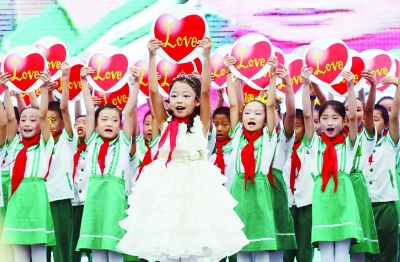 9月21日,河南省林州市第二小學學生在演唱和平之歌。當日,以“世界和平教育與紅旗渠精神傳承”為主題的第二屆中國林州國際友好和平藝術節在林州一中分校拉開帷幕。本屆藝術節期間將舉辦“中國精神”學生歌唱大賽、“激情林州”滑翔傘國際邀請賽、傳統文化公益講座和道德法律進萬家、新銳藝術展、“和”漫書藝術展等豐富多彩的活動。從2002年起,每年9月21日為世界和平日。今年世界和平日的主題是“教育促進和平”。 本報記者 劉新武攝