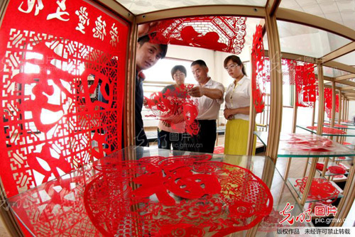 坐落于“中華剪紙第一村”——山東無棣水灣鎮前孟橋村的榮德堂,創建于600多年前的明朝永樂年間。其作品豐富多彩、千姿百態,有神話傳說、戲劇臉譜、歷史人物、飛禽走獸、人情風俗等3000多個品種。圖為9月23日,榮德堂的剪紙師傅正在給幾個年輕徒弟上課。