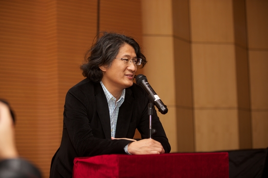 中國人民大學(xué)藝術(shù)學(xué)院黨委書記兼副院長鄭曉華介紹專家情況