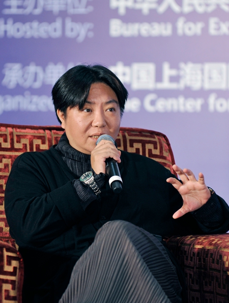 10月18日第十五屆上海國際藝術節(jié)盛大開幕。本屆藝術節(jié)的主旨論壇是“包容、開放與創(chuàng)新——尊重文化多樣性,促進文化間對話”,圖為著名話劇導演田沁鑫在論壇上發(fā)言。她帶來上海國際藝術節(jié)的委約作品《青蛇》演出。中國文藝網張悅攝