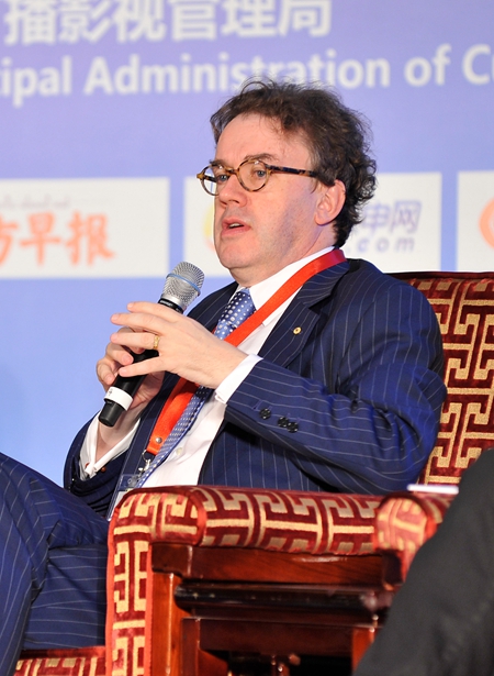 10月18日第十五屆上海國際藝術節(jié)盛大開幕。本屆藝術節(jié)的主旨論壇是“包容、 開放與創(chuàng)新——尊重文化多樣性,促進文化間對話”,圖為愛丁堡國際藝術節(jié)總監(jiān)喬納森?尼爾斯做主旨演講。中國文藝網張悅攝