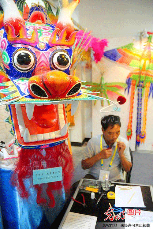 10月24日,風(fēng)箏制作師程先生正在制作風(fēng)箏。當(dāng)日,2013中國(杭州)工藝美術(shù)精品博覽會在杭州和平國際會展中心開幕,博覽會將一直持續(xù)到10月28日。連國慶攝/光明圖片