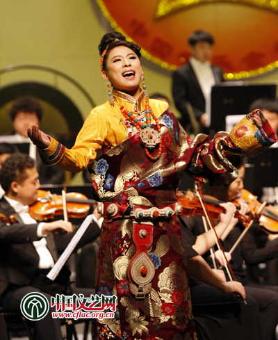 開幕式音樂會上, 藏族的歌手擁江帆在開幕音樂會上演唱《跑馬山情思》。張大勇 攝