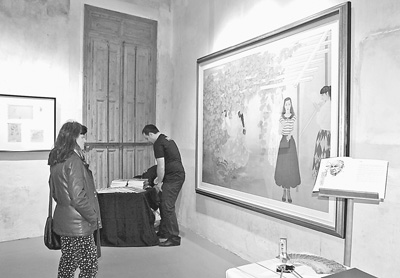 11月21日,在巴塞羅那現(xiàn)代藝術(shù)博物館舉行的何家英當(dāng)代繪畫展上,觀眾在欣賞畫作。本報記者 丁大偉攝