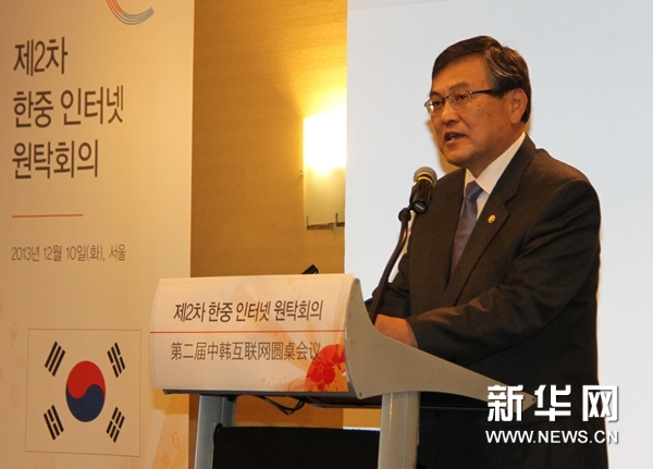 第二屆中韓互聯網圓桌會議10日在韓國首爾舉行,會議以“互聯網的發展與安全”為主題,匯集了中韓兩國政府部門、行業組織、知名互聯網企業和學術機構等近百位代表參與討論。中國國家互聯網信息辦公室主任魯煒、韓國未來創造科學部部長崔文基出席會議并作主旨演講。 圖為12月10日,韓國未來創造科學部部長崔文基在第二屆中韓互聯網圓桌會議上作主旨演講。記者姚琪琳攝