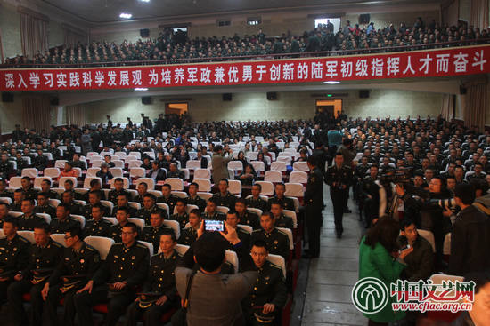 你方唱罷《團結就是力量》,我登場唱《一二三四》,歌聲從四面八方而來,一首比一首嘹亮,誰也不肯落后。這是中國文聯、中國影協“送歡樂 下基層 走進軍營 文藝志愿慰問服務活動”的現場,12月7日,由中國文聯副主席、中國影協主席李雪健帶領的知名藝術家們走進了南昌陸軍學院。演出還沒開始,現場的觀眾便一睹了軍營風采,紛紛掏出手機拍攝。