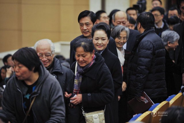 李凌,1913年出生于廣東臺山市,1938年與8位進(jìn)步青年一起遠(yuǎn)赴延安,進(jìn)入延安魯迅藝術(shù)學(xué)院學(xué)習(xí),1949年新中國成立后歷任中央音樂學(xué)院教務(wù)副主任,中央歌舞團(tuán)、中央樂團(tuán)團(tuán)長、中國音樂學(xué)院院長,全國文聯(lián)書記處書記、中國音樂家協(xié)會副主席,中央樂團(tuán)顧問等職。圖為彭麗媛步入會場。