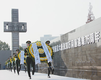 南京12月13日電 13日上午10時,凄厲的警報聲響徹南京,江蘇省暨南京市各界人士、駐寧部隊代表和專程來寧的中外和平友好人士共約5000人,在侵華日軍南京大屠殺遇難同胞紀(jì)念館舉行悼念儀式暨國際和平日集會,悼念76年前被侵華日軍血腥屠殺的30多萬遇難者。