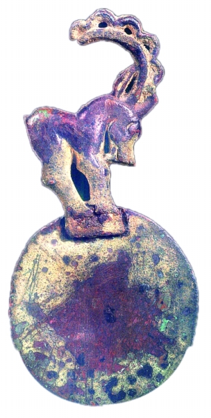 圖為新疆伊吾縣葦子峽墓地出土的立鹿式銅鏡資料圖片