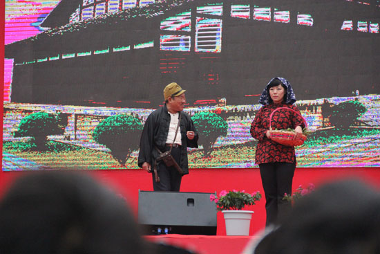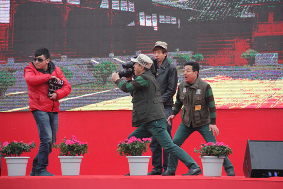 演員劉全和、劉全利表演幽默劇《兄弟拍電影》 中國文藝網 丁薇 攝