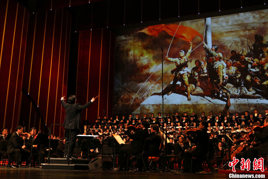 12月25日晚,《人民的毛澤東》紀念毛澤東誕辰120周年音樂會在國家大劇院舉行,上千名首都各界群眾共同觀看了這臺音樂會。據悉,該場音樂會由國家大劇院、中國音樂家協會共同主辦,以毛澤東詩詞為主要創作題材,勾畫了中國革命各個歷史時期的重大歷史事件。中新社發 李慧思 攝