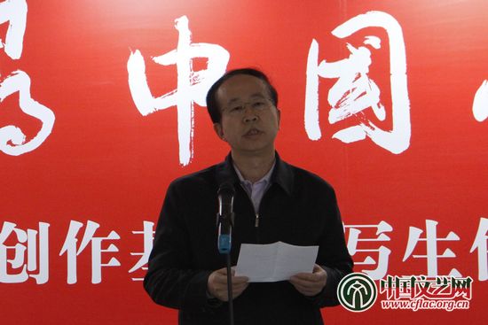 中國文聯黨組成員、副主席左中一在開幕式講話中高度肯定了美術家赴基層采風創作的奉獻精神。中國文藝網 馬李文博 攝