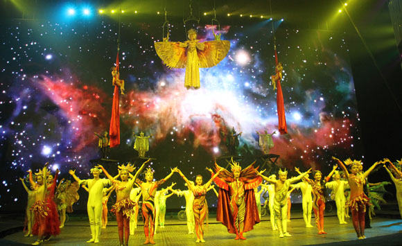 圖為頒獎儀式后,河南省雜技集團的大型雜技劇《水秀》上演,為觀眾呈上一場視覺盛宴。中國文藝網 何瑞涓 攝